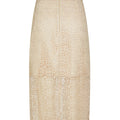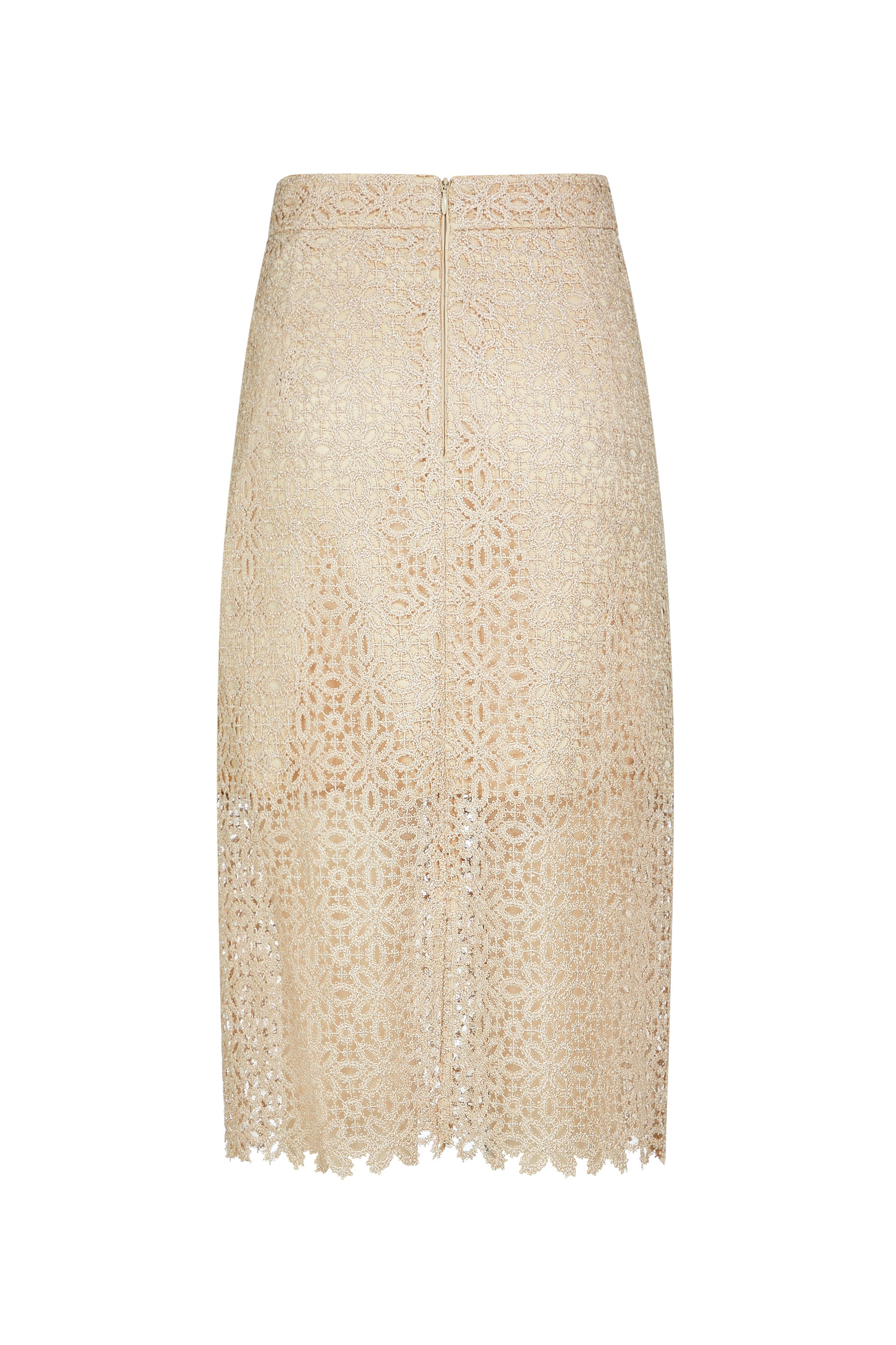 The skirt features delicate openwork lace with exquisite craftsmanship. The soft khaki tone is timeless and versatile, while the straight cut offers a clean silhouette that exudes mature elegance.